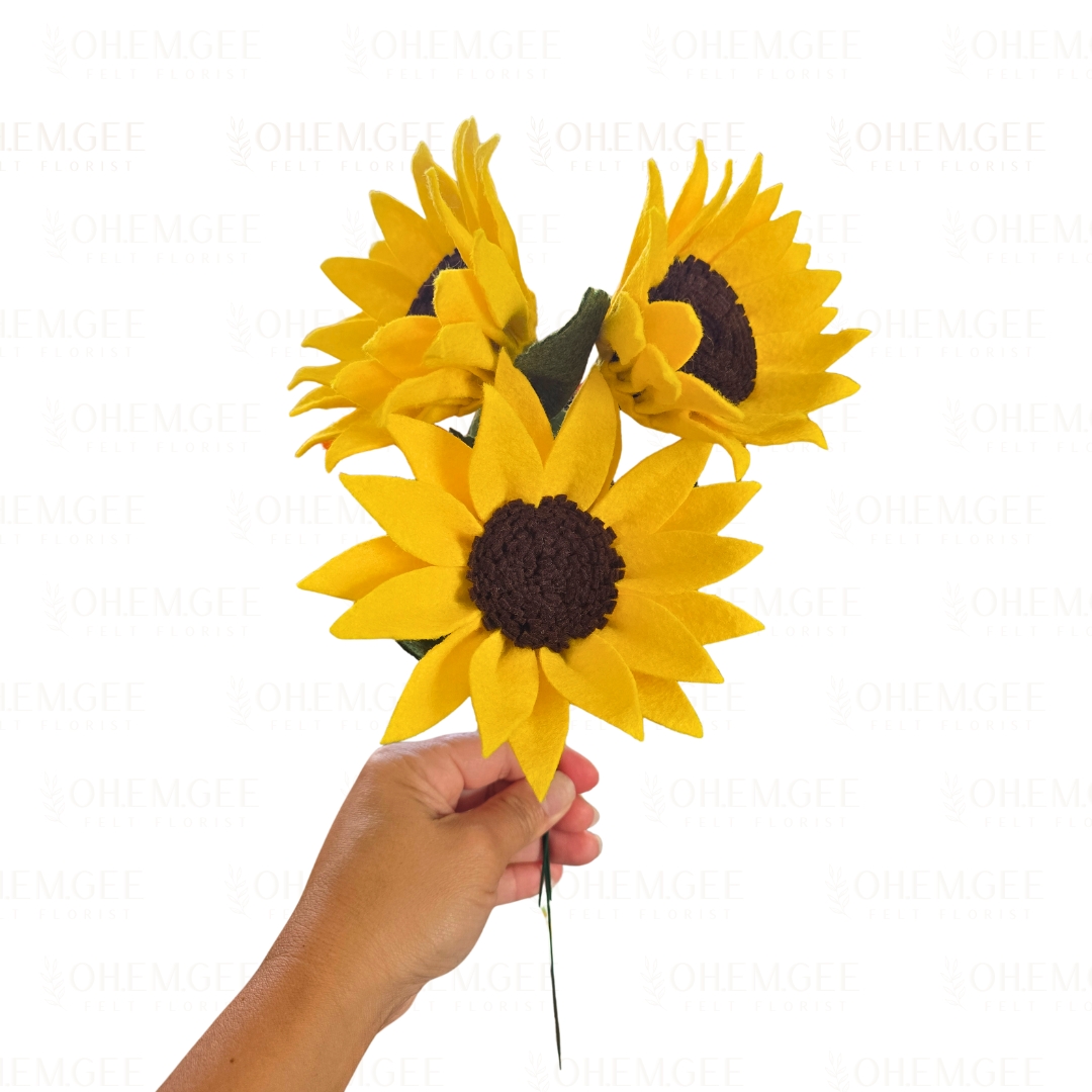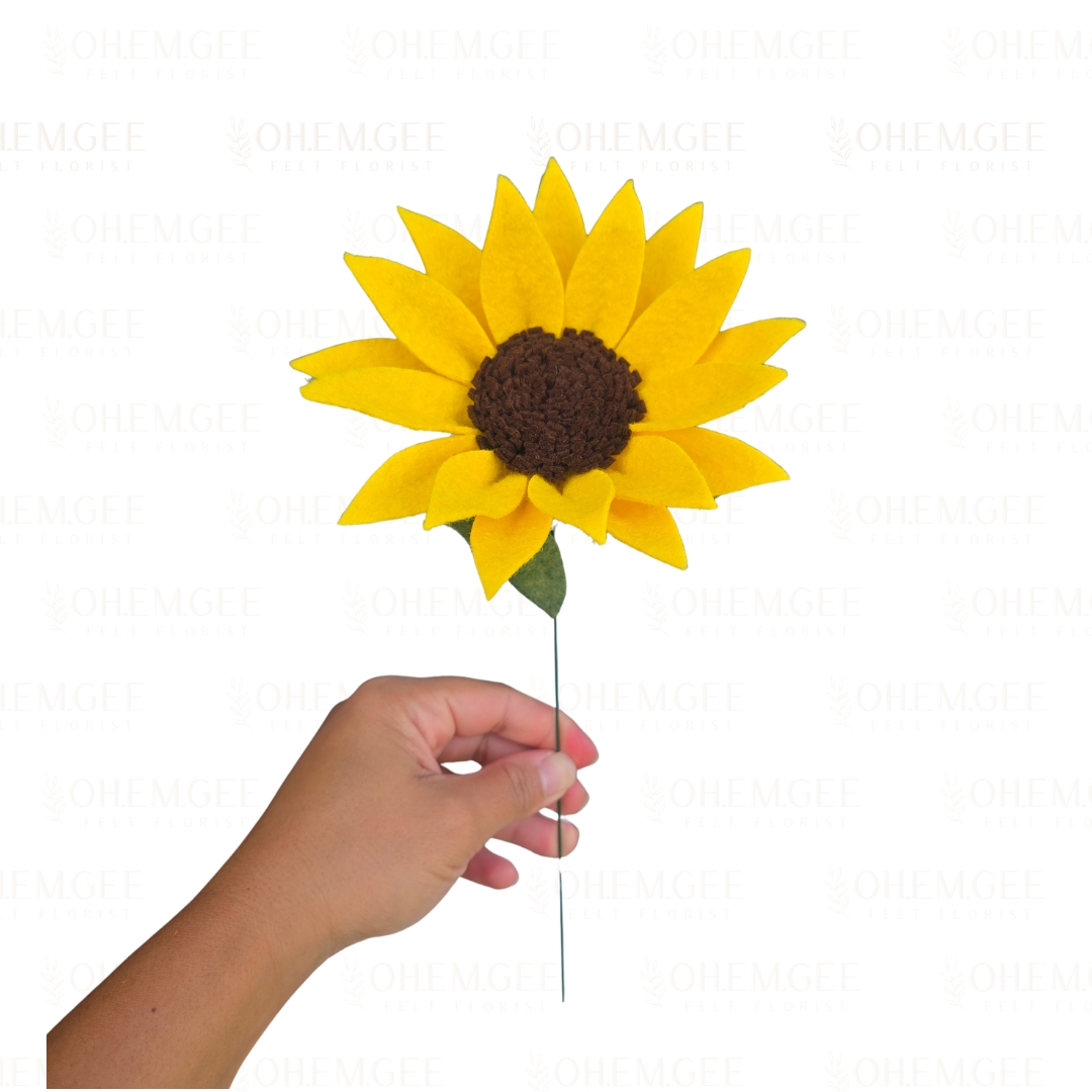 One flower per stem. The mini sunflower is approx 12cm wide and 26cm high.