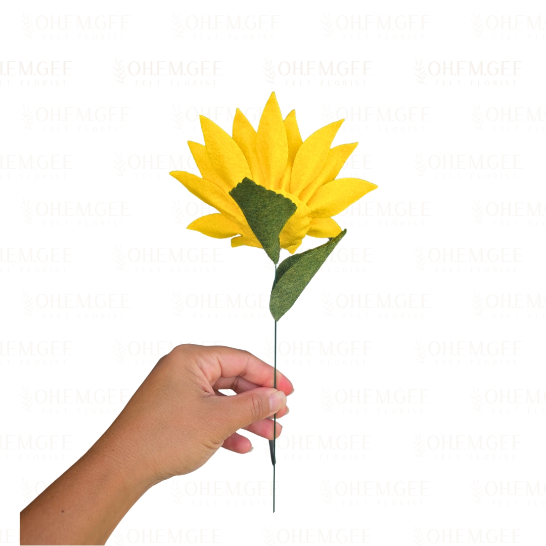 Shining bright like the sun, we have our wonderful felt sunflower, with a brown centre and yellow petals.